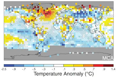 Tidligere (regionale) varmeperioder beviser ikke at den oppvarmingen vi ser nå ikke er menneskeskapt. Dette er en irrelevant konklusjon-tankefeil. Uansett hva som skjedde før, er det nå som betyr noe. Tenk deg om det var en varmeperiode i middeeladeren som var global og så varm som i dag. Først må den ha hatt en annen grunn enn økt drivhuseffekt, og for det andre, endte den. Dermed var det naturlig variasjon. (Som og indikerer at klimaet har høy sensitivitet). Skeptikerne ser ofte dette som et argument mot "CO2-hypotesen", siden de tror de har funnet "noe annet" som kan forårsake det vi ser nå, men det er en grundig logisk kortslutning. Kunnskapen om klimaendringene vi opplever nå pga en økning i mengden av klimagasser, har vi fra grunnleggende fysikk, ikke fra målinger av en temperatur som har vært relativt stabil i tusenvis av år. Vi vet at effekt / oppvarming er her - og vi vet at det ikke vil endre seg med det første. Diskusjonen om middelalderen er akademisk interessant, men ellers en blindgate. (Og for ordens skyld: Det er fortsatt ingen studie som viser en global oppvarming i middelalderen. Lokal, ja og kort, men ikke en lang, global en som kan sammenlignes med i dag.